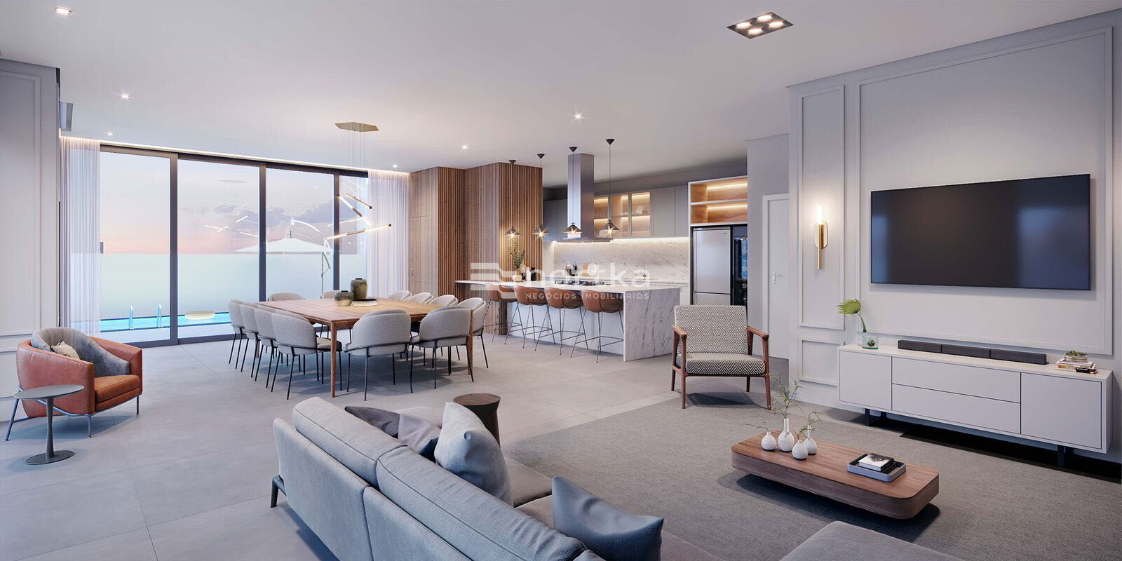 Desfrute de momentos únicos na espaçosa sala de estar e jantar, perfeita para receber amigos e familiares. A churrasqueira integrada proporciona ainda mais comodidade e praticidade para os seus momentos de lazer. Além disso, a localização privilegiada oferece fácil acesso a diversas facilidades do dia a dia.